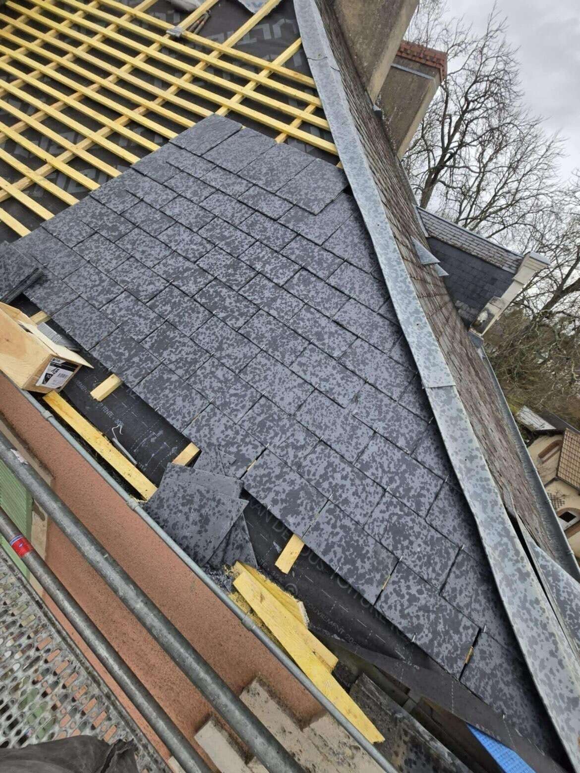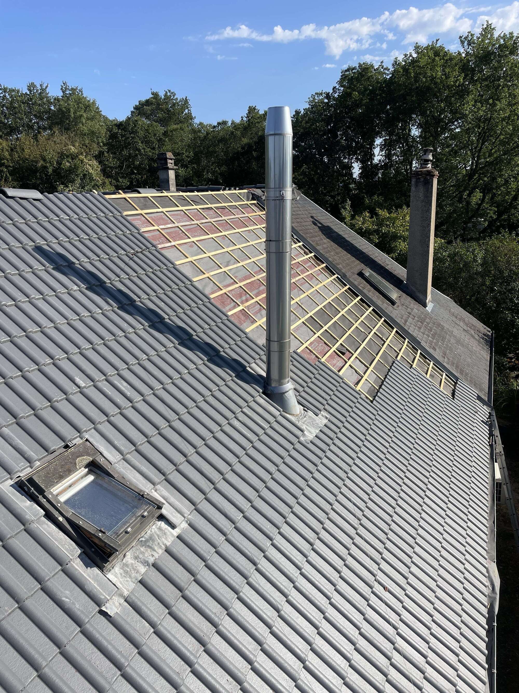 Nous intervenons sur tous types de toitures : ardoise naturelle, tuile terre cuite, tuile béton ou bac acier.